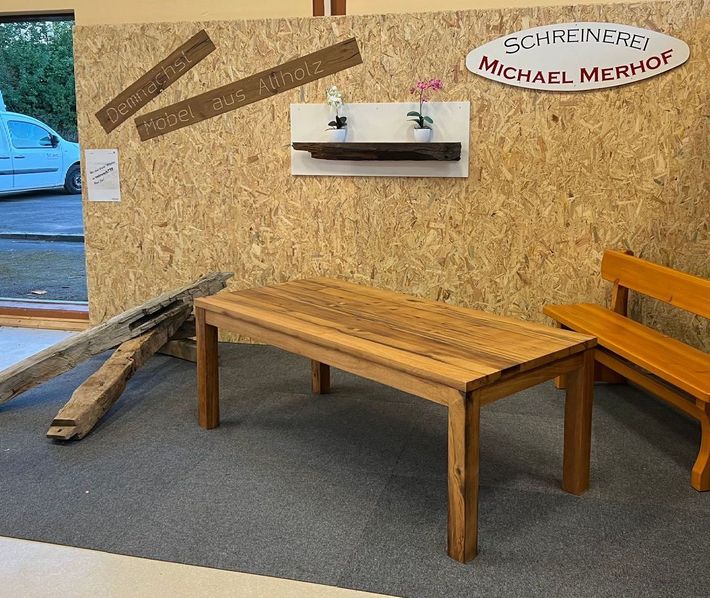 Möbel aus fast 300 Jahre alten Eichenbalken.